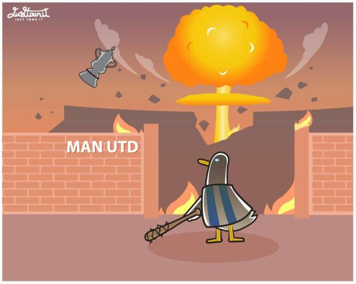 黑貝弒救主 曼聯(lián)1-2不敵布萊頓 Man Utd 1-2 Brighton Cartoon by Kaew Justtoonit, Artist from Thailand.
